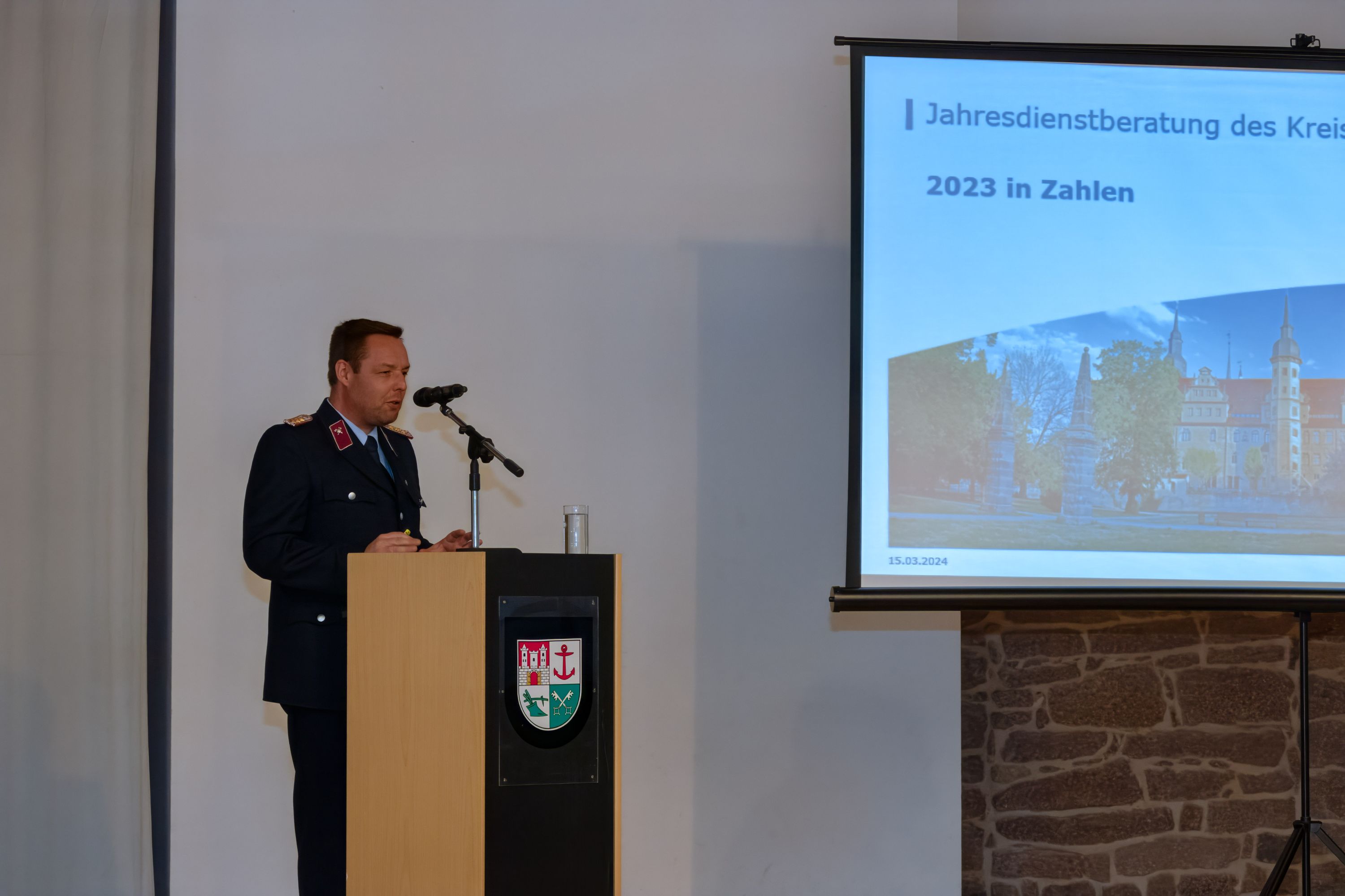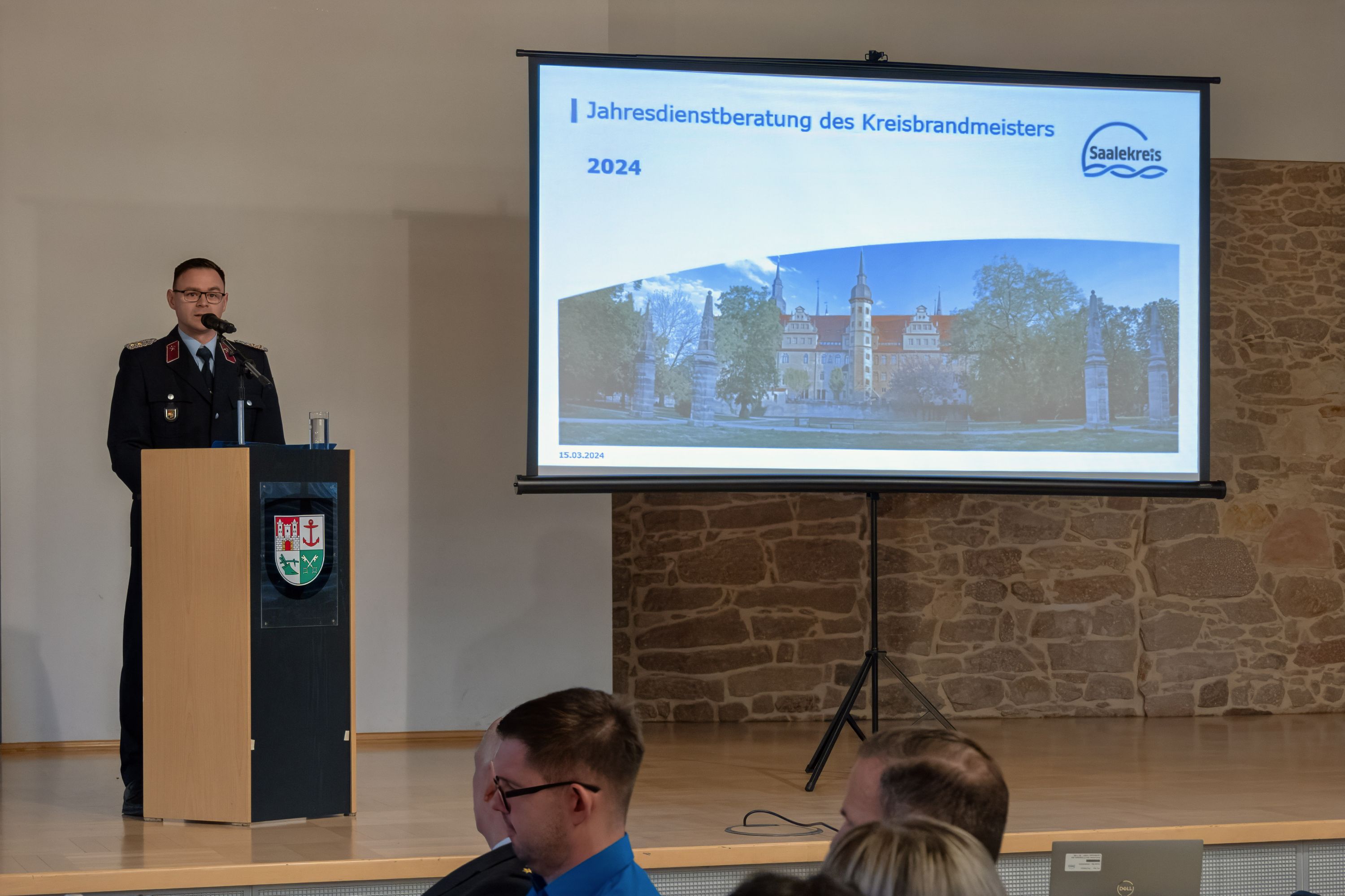 Am 15.03.2024 trafen sich Vertreter der Feuerwehren, Bürgermeister der Städte und Gemeinden sowie deren Mitarbeiter zur Dienstberatung des Kreisbrandmeisters in Löbejün. Im Mittelpunkt stand dabei die Rechenschaft über die Feuerwehrereignisse des Jahres 2023.